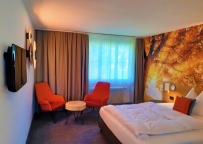 Das Hotel verfügt über 72 qualitativ hochwertig eingerichtete Economy-, Komfort- und Business-Zimmer sowie Junior Suiten. Vier helle, modernst ausgestattete Seminarräume bieten eine Kapazität von 2 bis 72 Personen und eignen sich optimal für Tagungen, Workshops, Schulungen und Sitzungen.