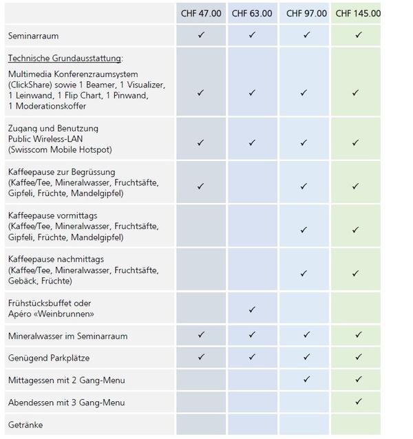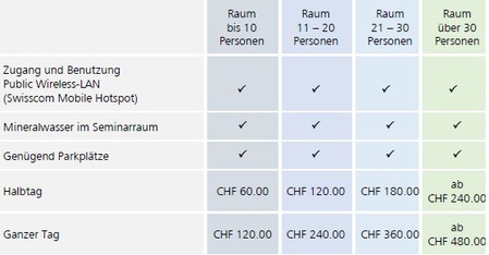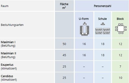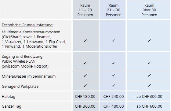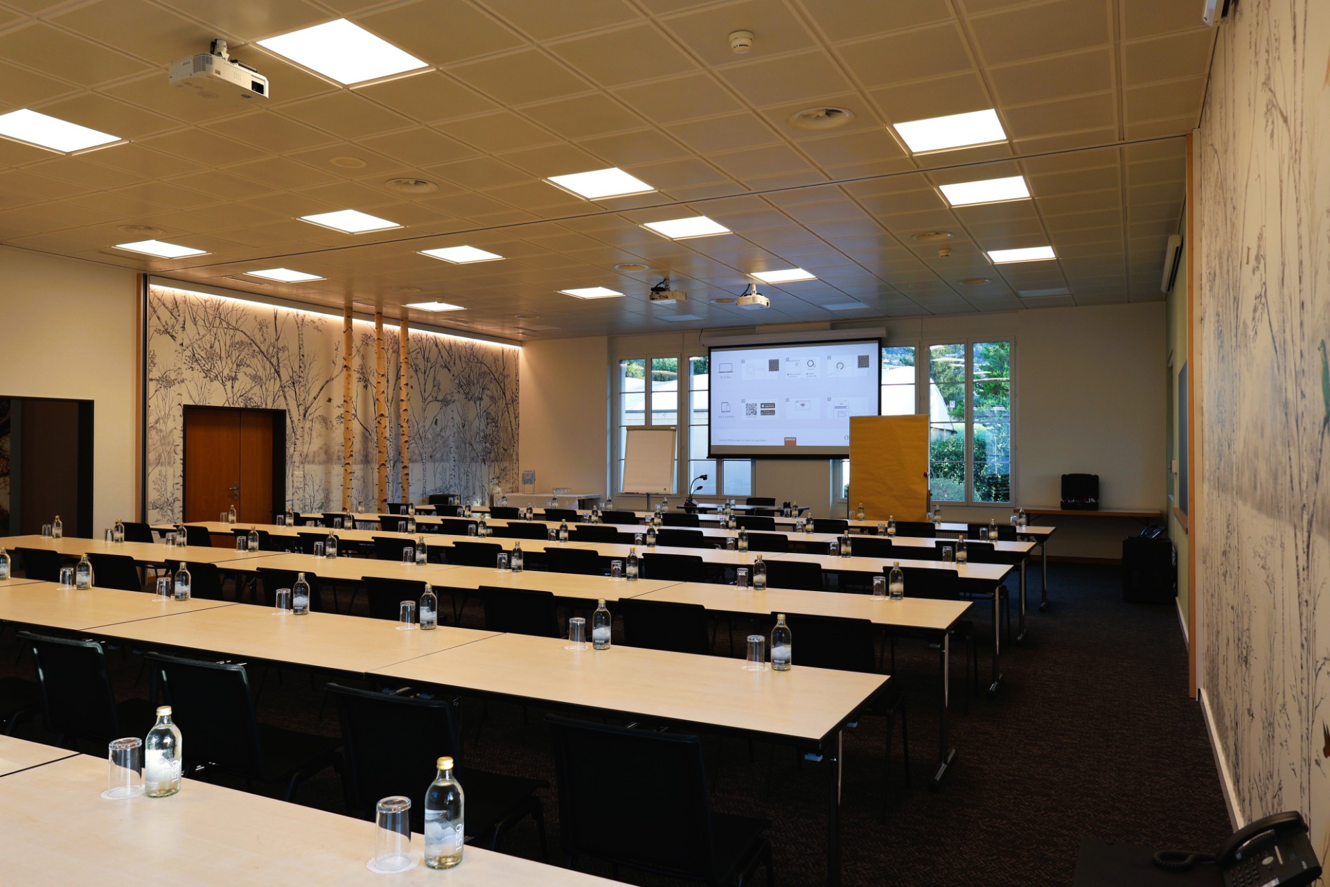 Von 2-Personen-Sitzungen bis 72-Personen-Seminaren bieten wir die idealen Seminar- und Gruppenräume. Helle Räume mit Multimedia Konferenzraumsystem (ClickShare) erlauben effizientes Arbeiten an ruhiger Lage.